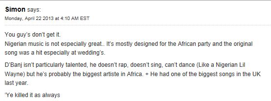 These are comments from international Hip Hop website RapRadar, after the website premiered the much awaited collaboration between D’banj and his G.O.O.D Music boss Kanye West – remix of his hit track Scapegoat.